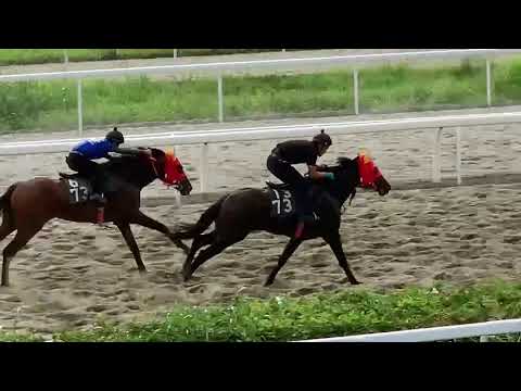 今回、内側から2歳既走馬と併せ、最後は息が持たず交わされてしまいましたが、前回より息持ちも向上しています。